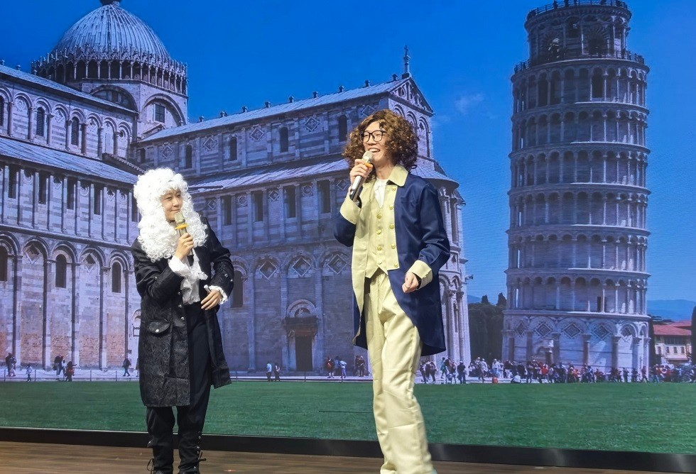 台上,选手们从容自信、妙语连珠,或调侃生活中的科学误区,或分享科研中的趣味瞬间,或解读身边的科学现象。有同学用生活案例解读数学实用性,有同学梳理日常科学冷知识,也有围绕餐厨垃圾资源化、Wi-Fi频段干扰、节食减肥生理机制等话题展开讲解。还有组合以伽利略与牛顿对话的相声形式演绎物理原理,也有同学结合能源化学与法学探讨新能源法律议题等。每一个段子都暗藏科普知识点,每一段表演都凝聚着选手们的用心与巧思。